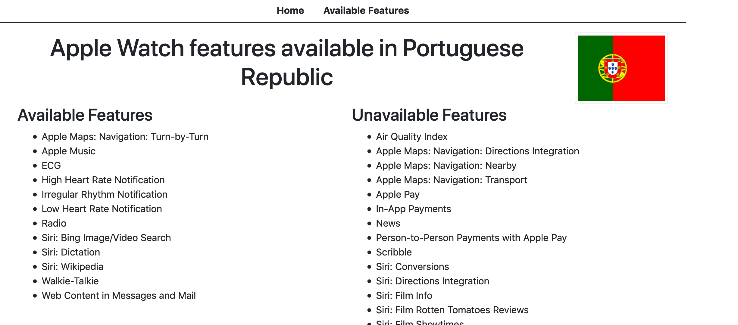 I recently brought an Apple Watch. It’s a pretty fantastic product! One thing that quite annoyed me while evaluating if I should buy it is that features can vary quite drastically per country, and there was no simple way to get a list of the features available where I live!