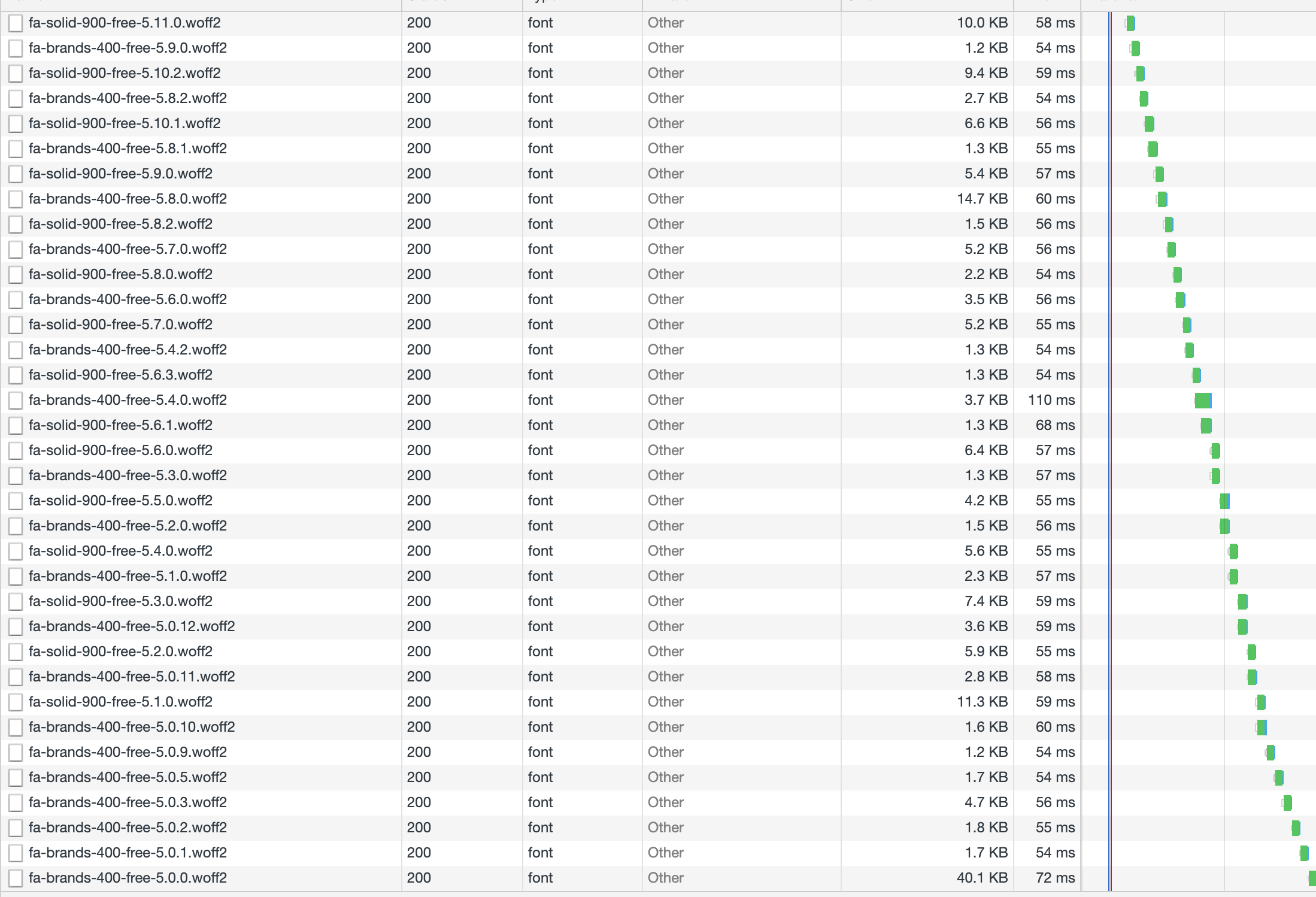 One of the hardest parts was, surprisingly, icons! I initially went with the classic Font-Awesome, but I didn’t like the way it had to fetch the entire catalogue of icons when I was just using four. I tried using the font-awesome “kits” system they are pushing but I found that it absolutely destroyed the page load metrics I was looking at in Chrome. It also ended up making a lot of requests: